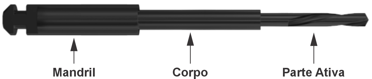 Sempre haverá necessidade do uso de ao menos duas brocas. A primeira sempre deve ser a mais curta (de 17 mm) que fará o acesso inicial, (broca guia).