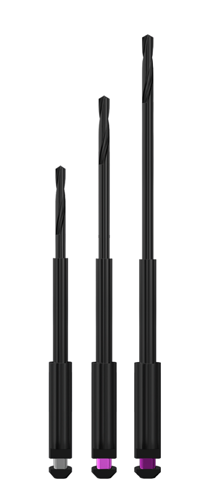 Brocas projetadas para uso com guias 3D, evitando desvio com preservação da estrutura do dente.