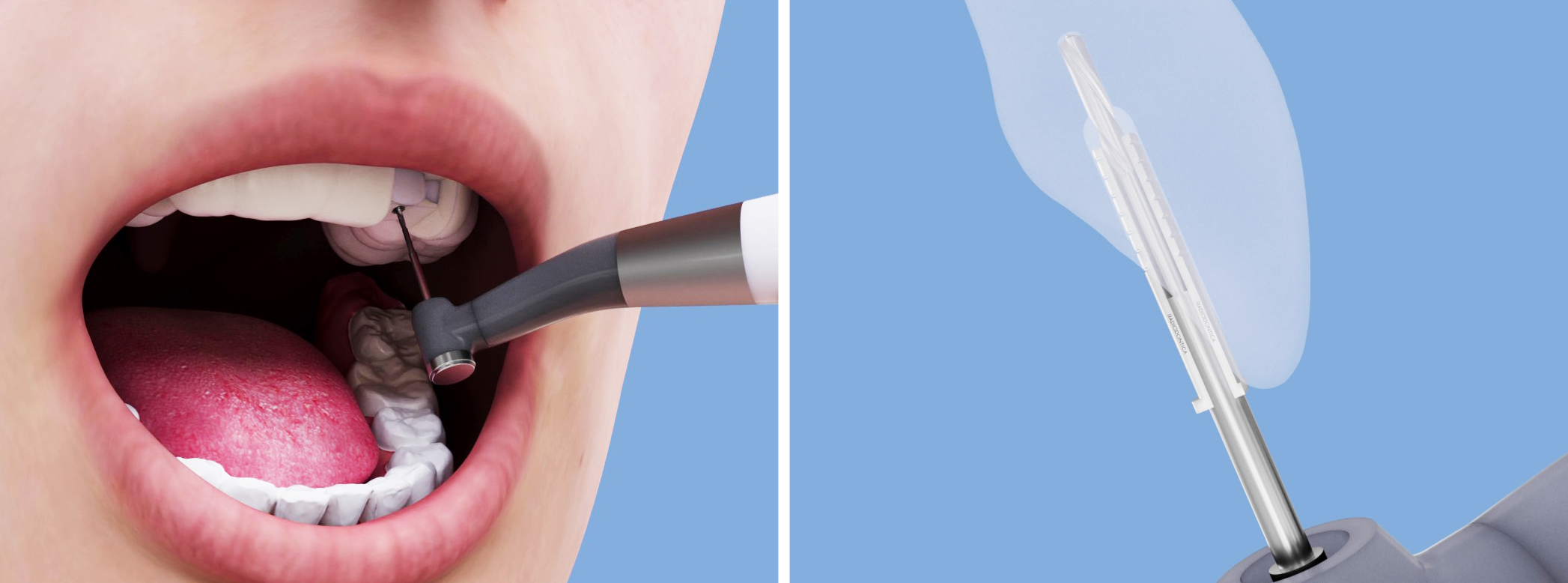Conjunto que alia tecnologia, ferramentais específicos e software 3D para planejamento das guias que garantem acesso preciso e seguro a canais calcificados de qualquer diâmetro com reduzido desgaste sem risco de fragilidade radicular.
